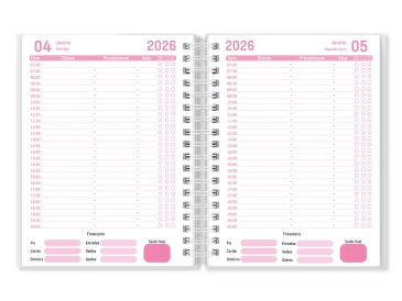 - 1 dia por página com folhas para informações de agendamentos.