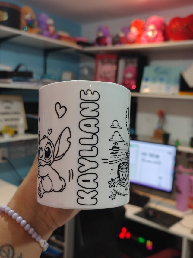 CANECA INFANTIL PARA COLORIR STITCH COM NOME