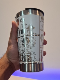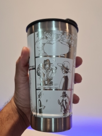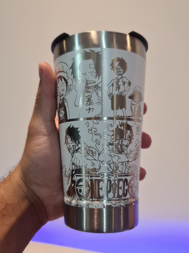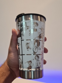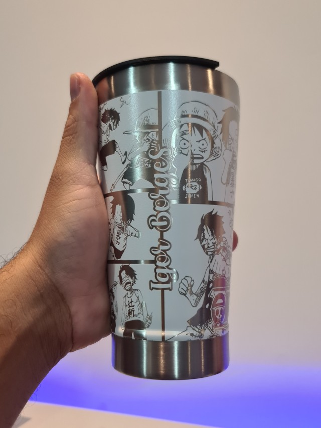 Copo Térmico com gravação a Laser com quadrinhos do Luffy e do Ace.