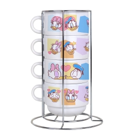 Jogo de 4 xícaras com suporte - Margarida e Donald