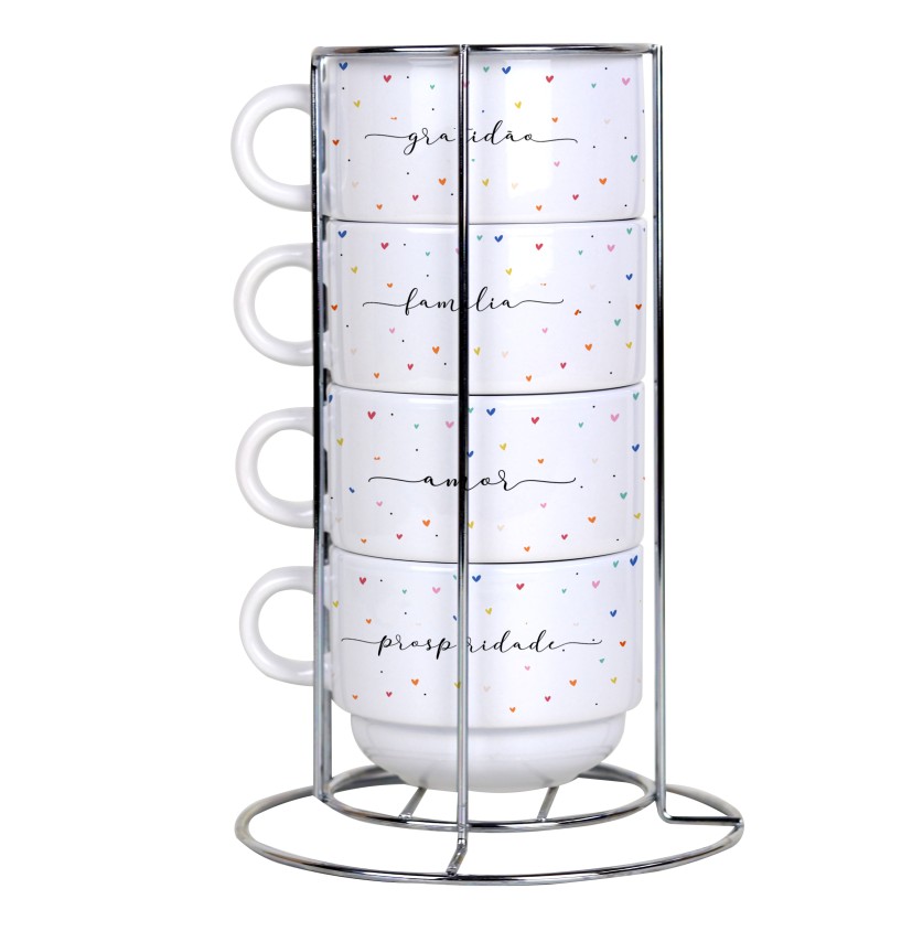 Lindo kit de 4 xícaras com suporte