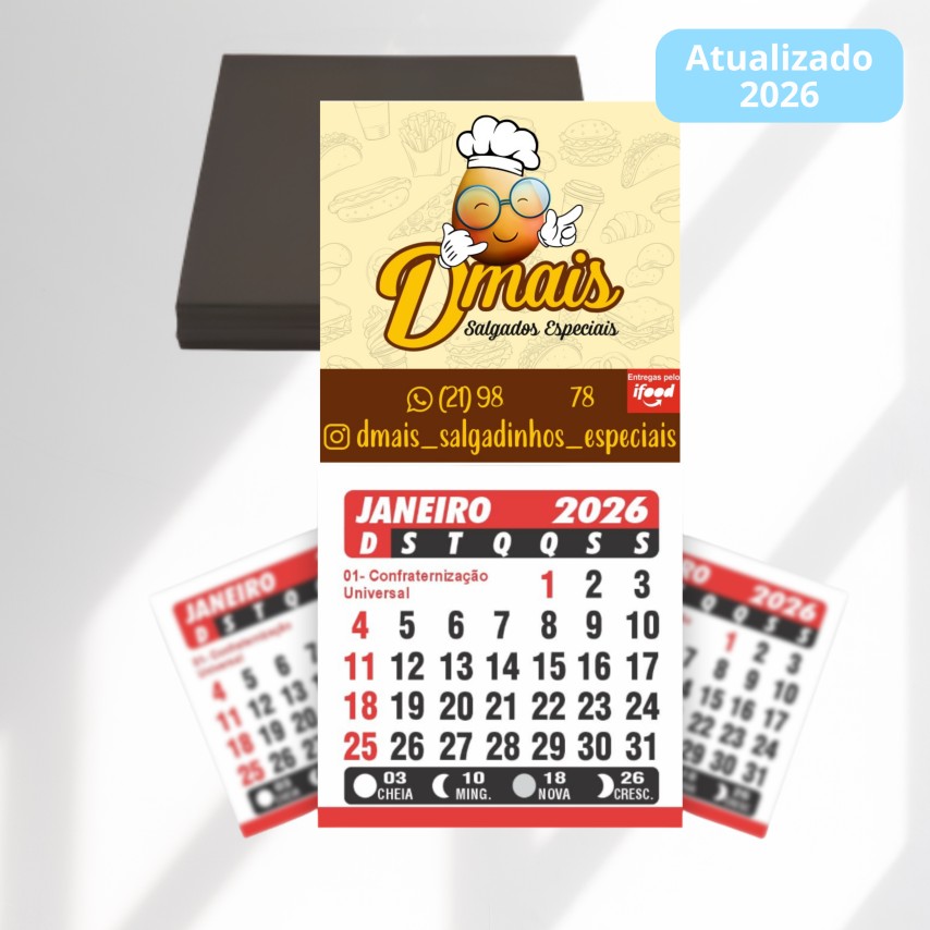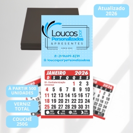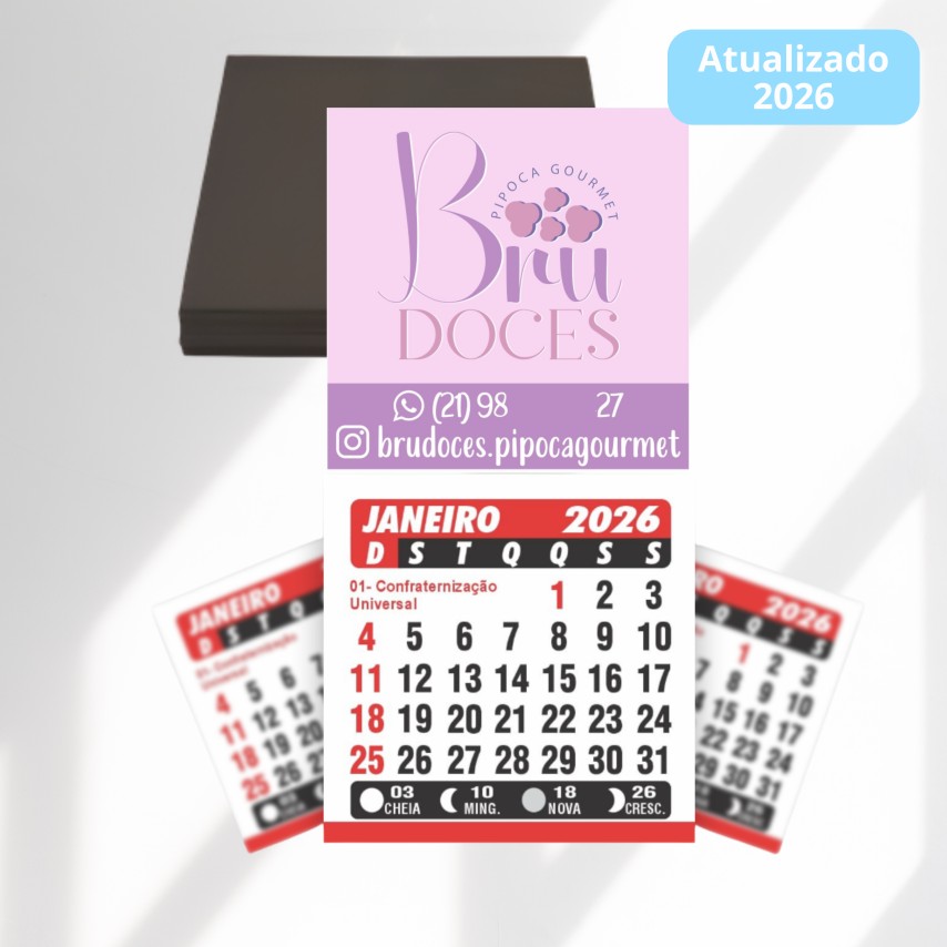 Mini calendário 2026 com imã de geladeira com sua Logo. Tamanho da arte 4,5x5 cm