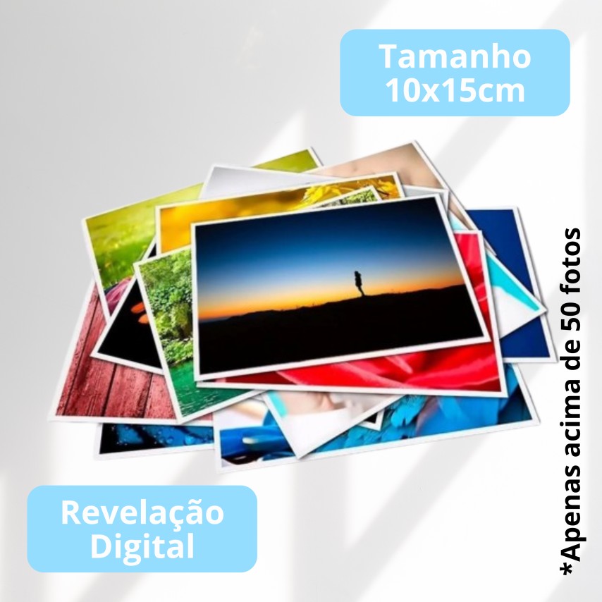 Revelação fotografica na medida 10x15. Maior durabilidade podendo chegar em até 100 anos. Revele seus melhores momentos no formato clássico 10x15cm para que eles durem muitos anos.