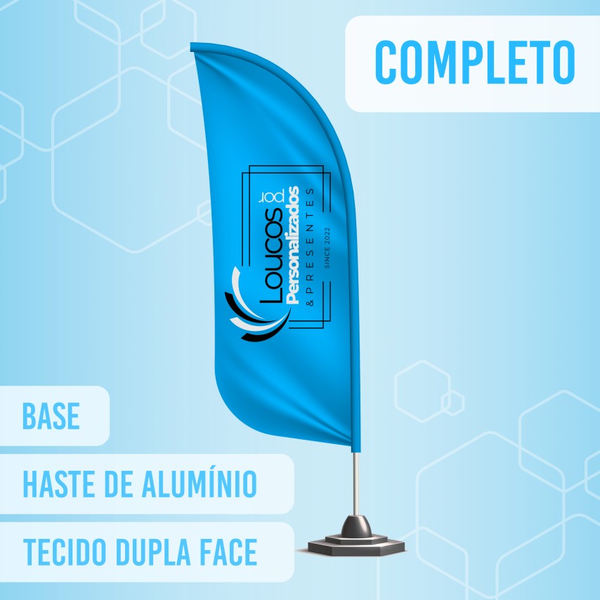 Wind banner completo (Base + Tecido Dupla face + haste em alumínio)